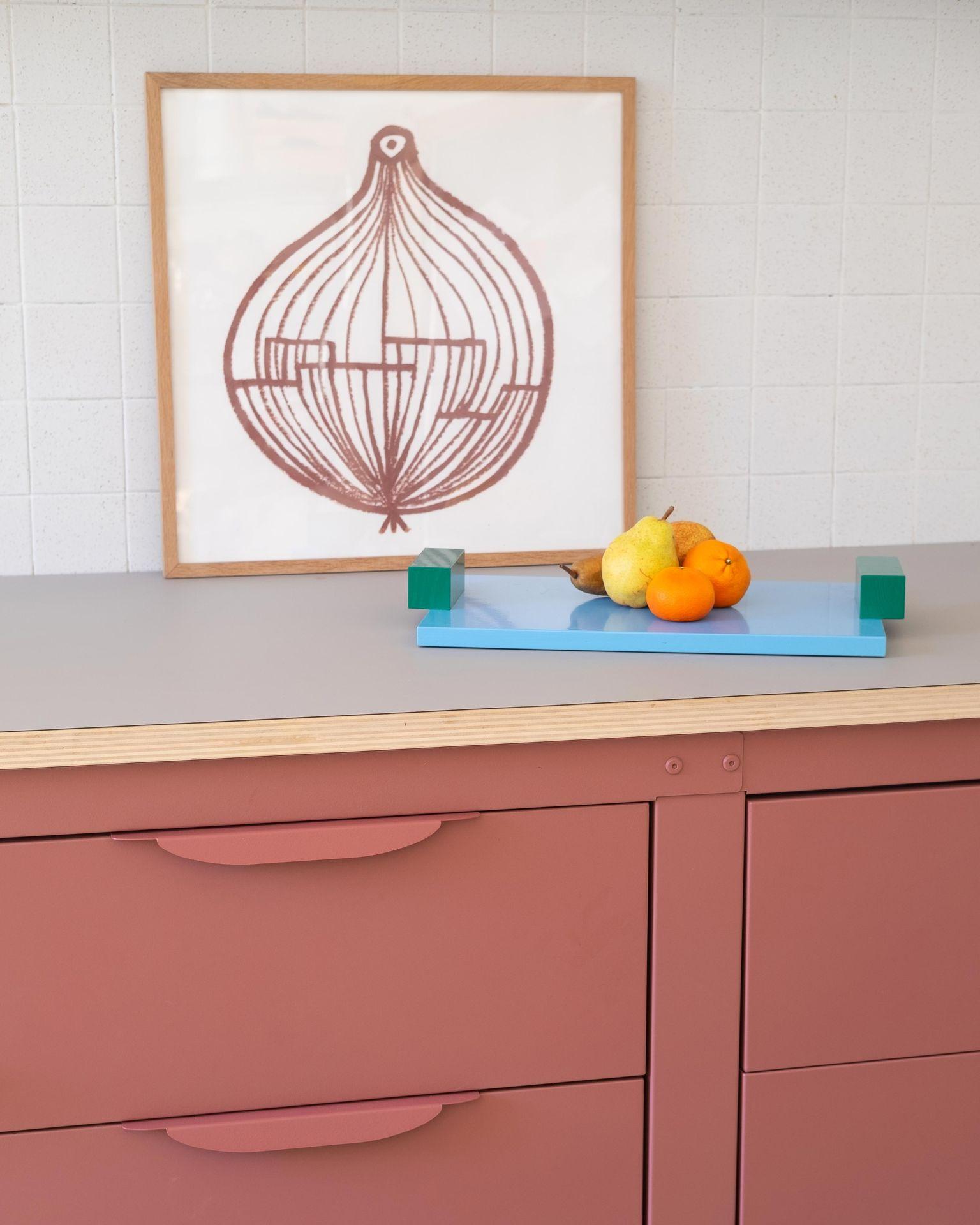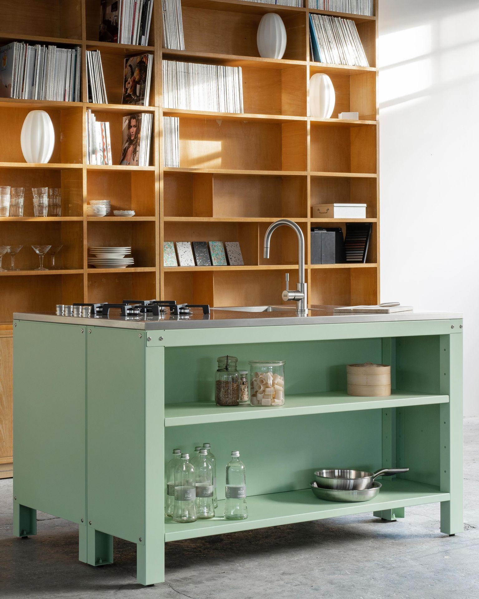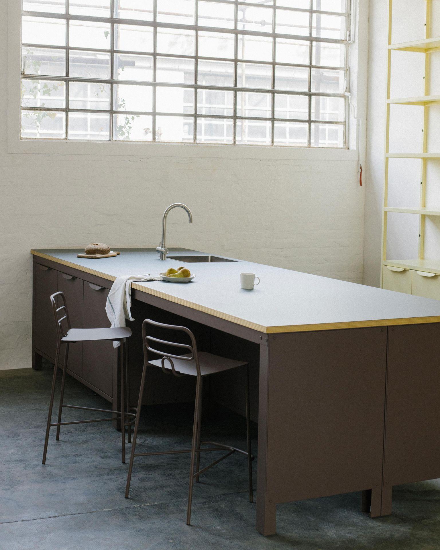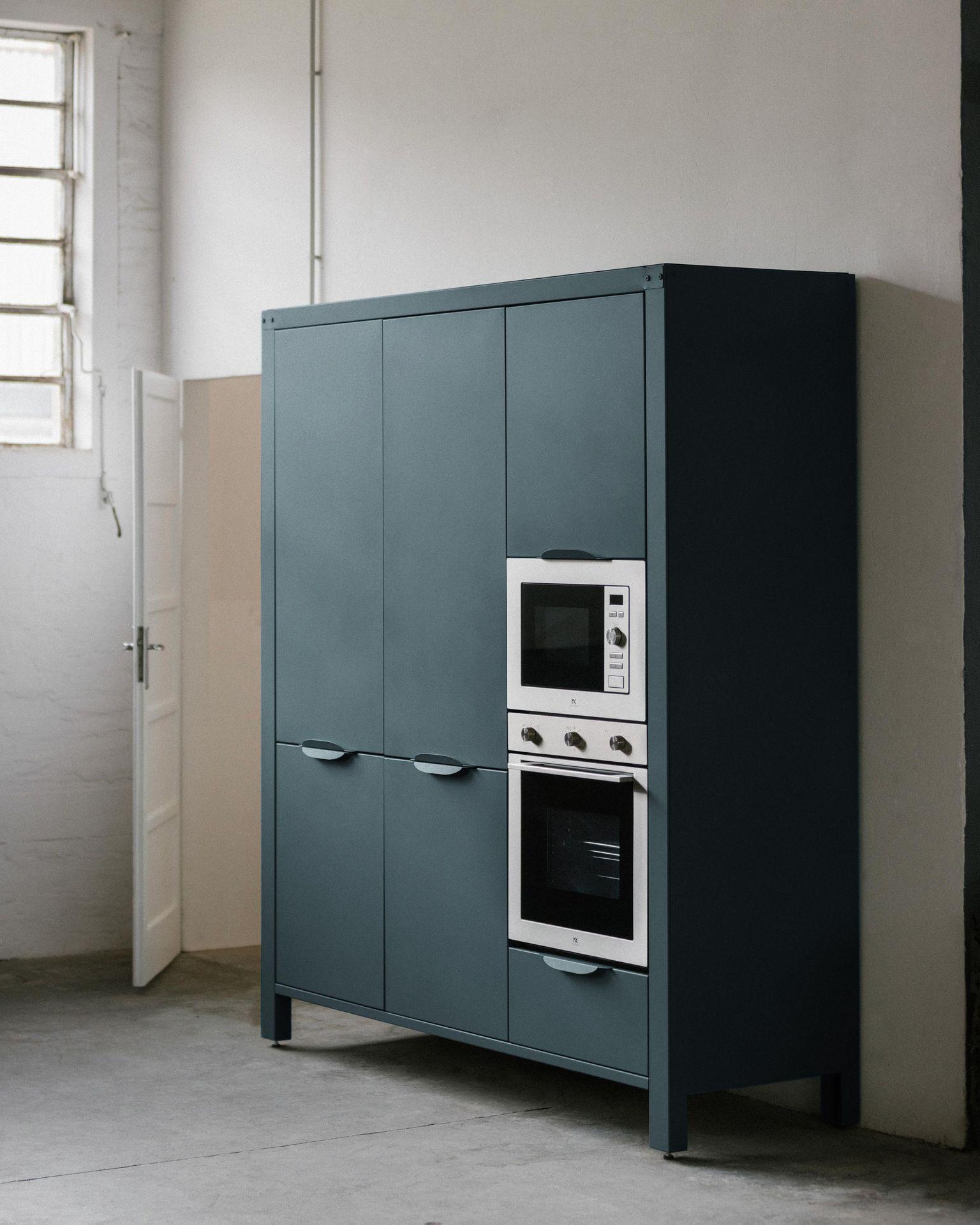 The painted kitchen structures are made from recycled galvanized steel, then finished in one of the standard colors from our palette.