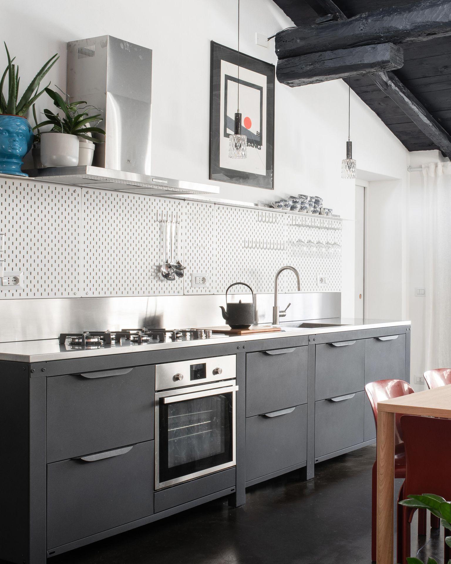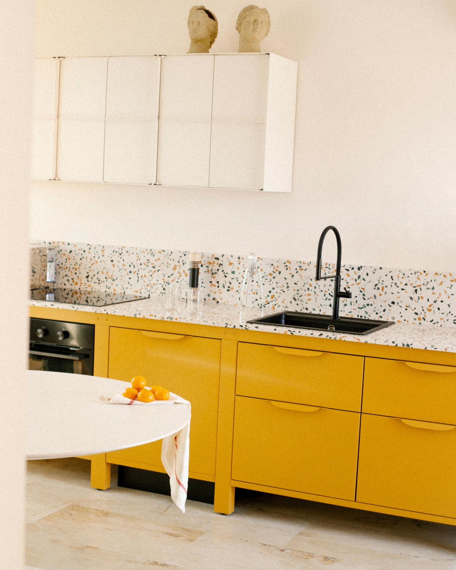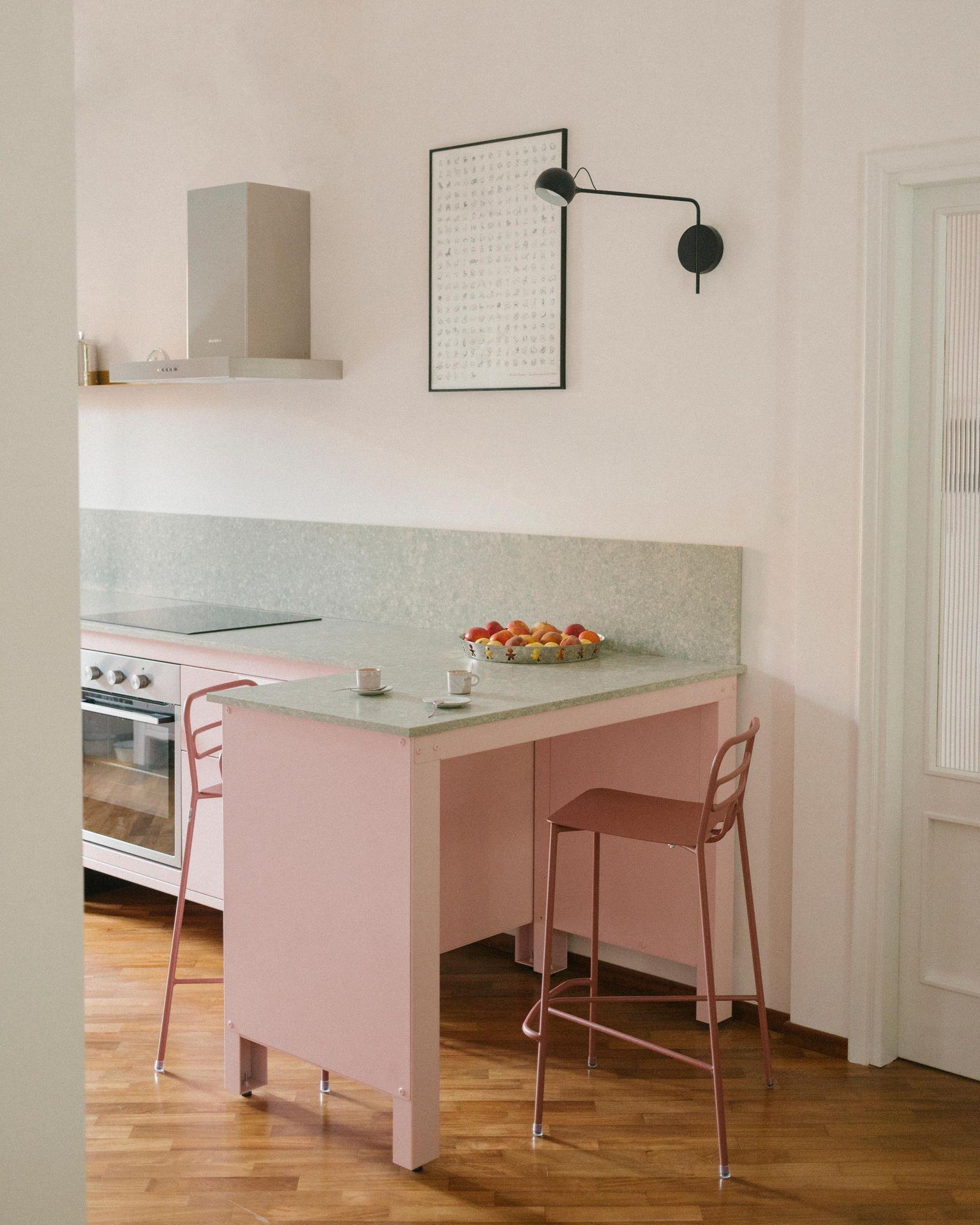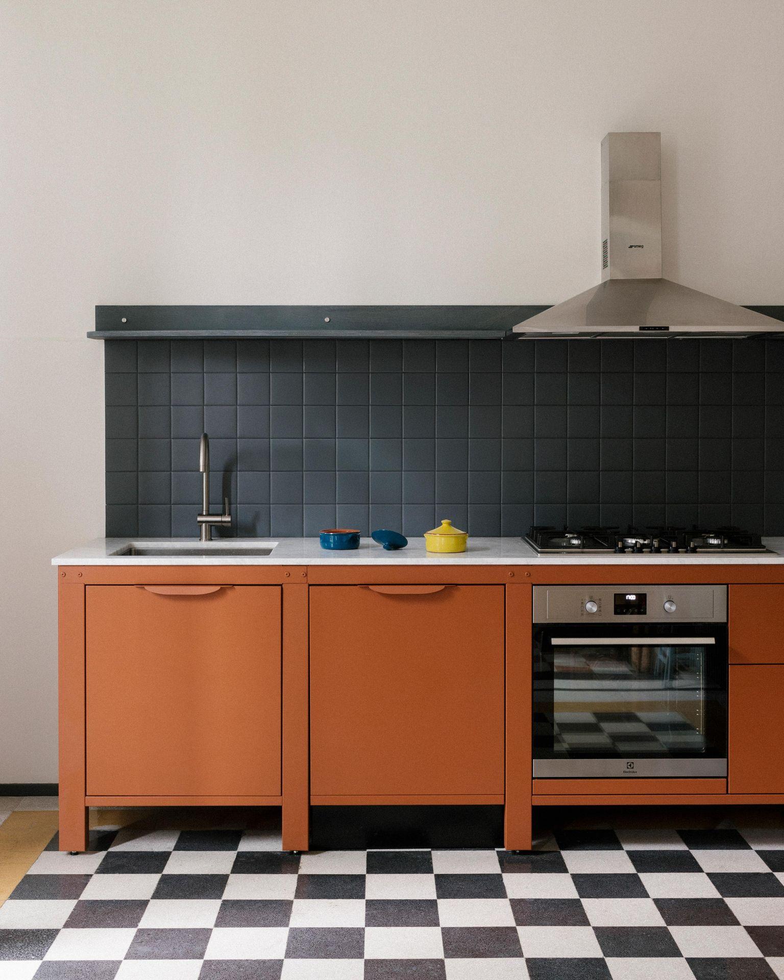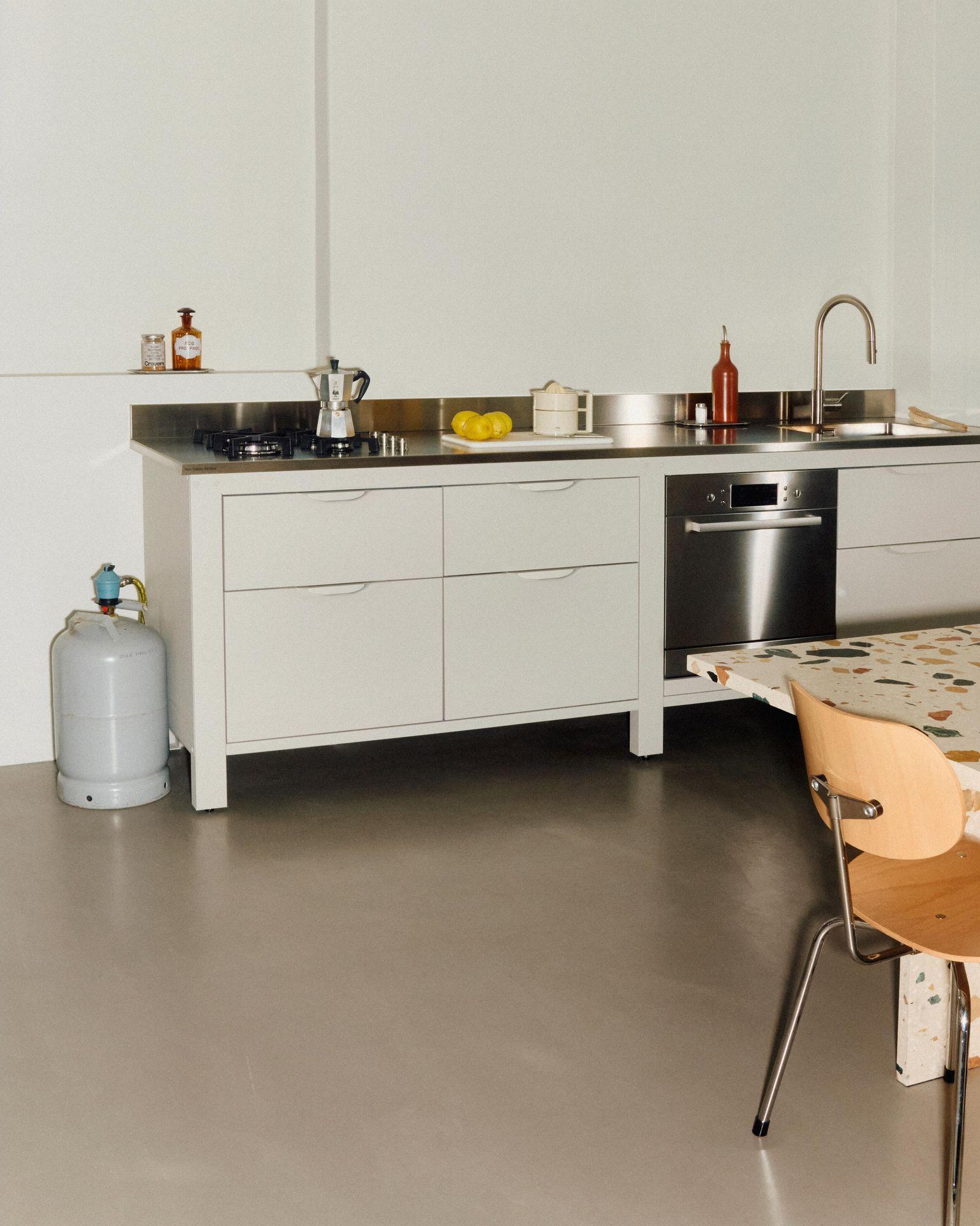 The painted kitchen structures are made from recycled galvanized steel, then finished in one of the standard colors from our palette.