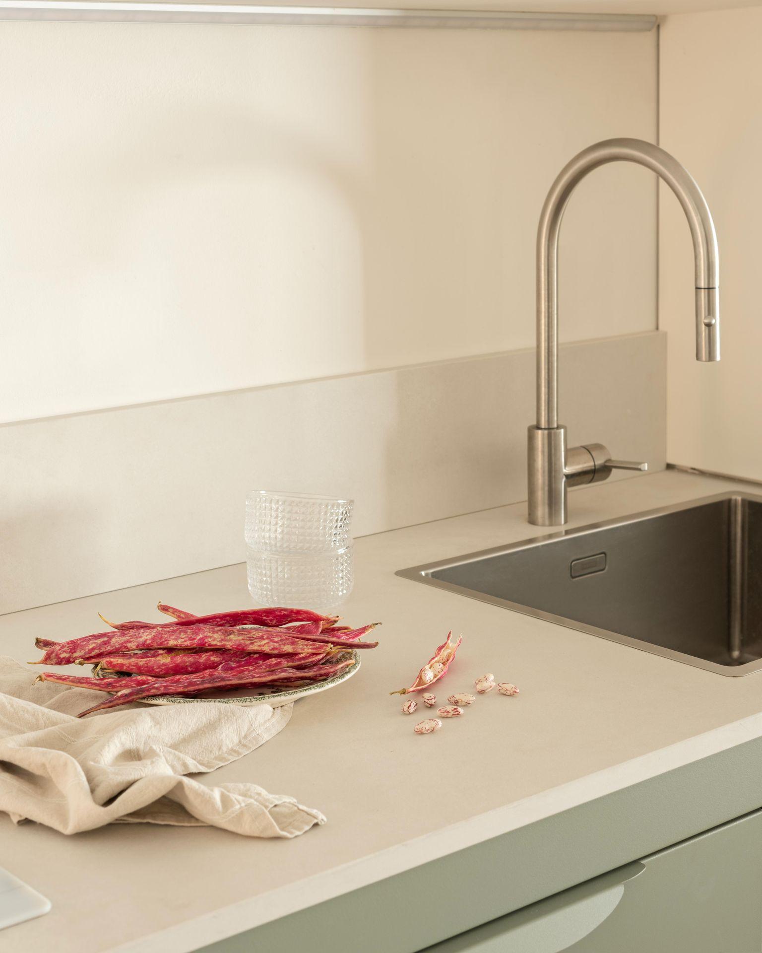 Its key feature is its non-porous surface, which makes it resistant to stubborn stains like oil, wine, and coffee. Unlike marble, it is also unaffected by acidic substances such as lemon juice or vinegar. Additionally, this compactness ensures natural hygiene by preventing the growth of bacteria and mold without the need for sealing.