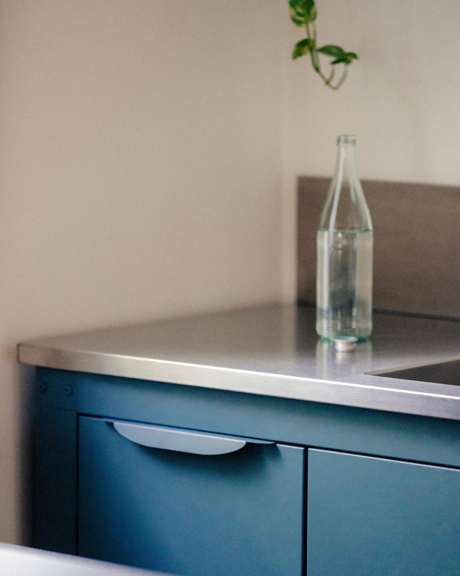 Maintenance is simple: for everyday cleaning, hot water and mild soap are sufficient, followed by drying with a soft cloth to avoid streaks. To keep its shine over time, you can occasionally use a product specially formulated for stainless steel, carefully following the product instructions. It’s important to always treat the steel countertop by following the direction of the brush.