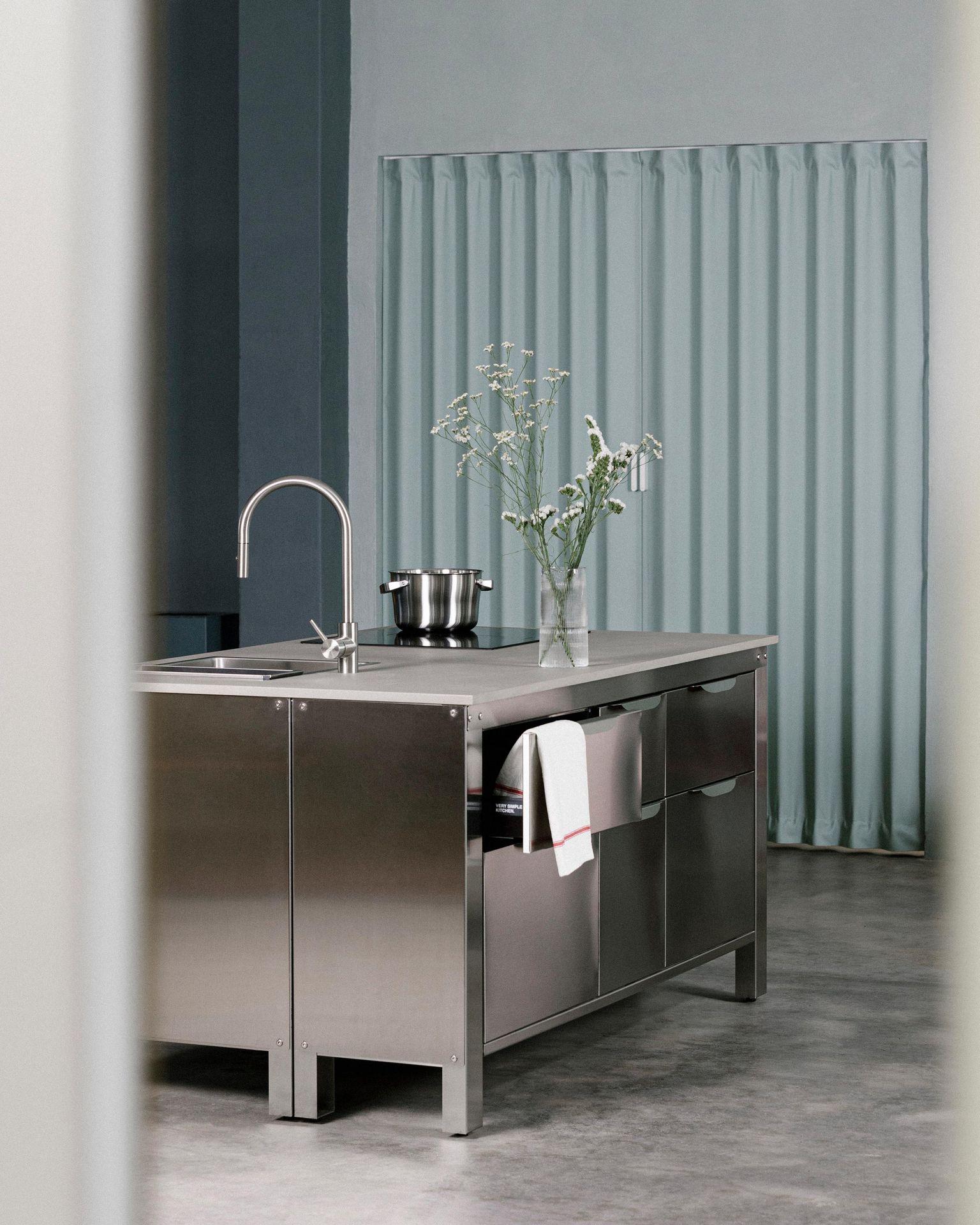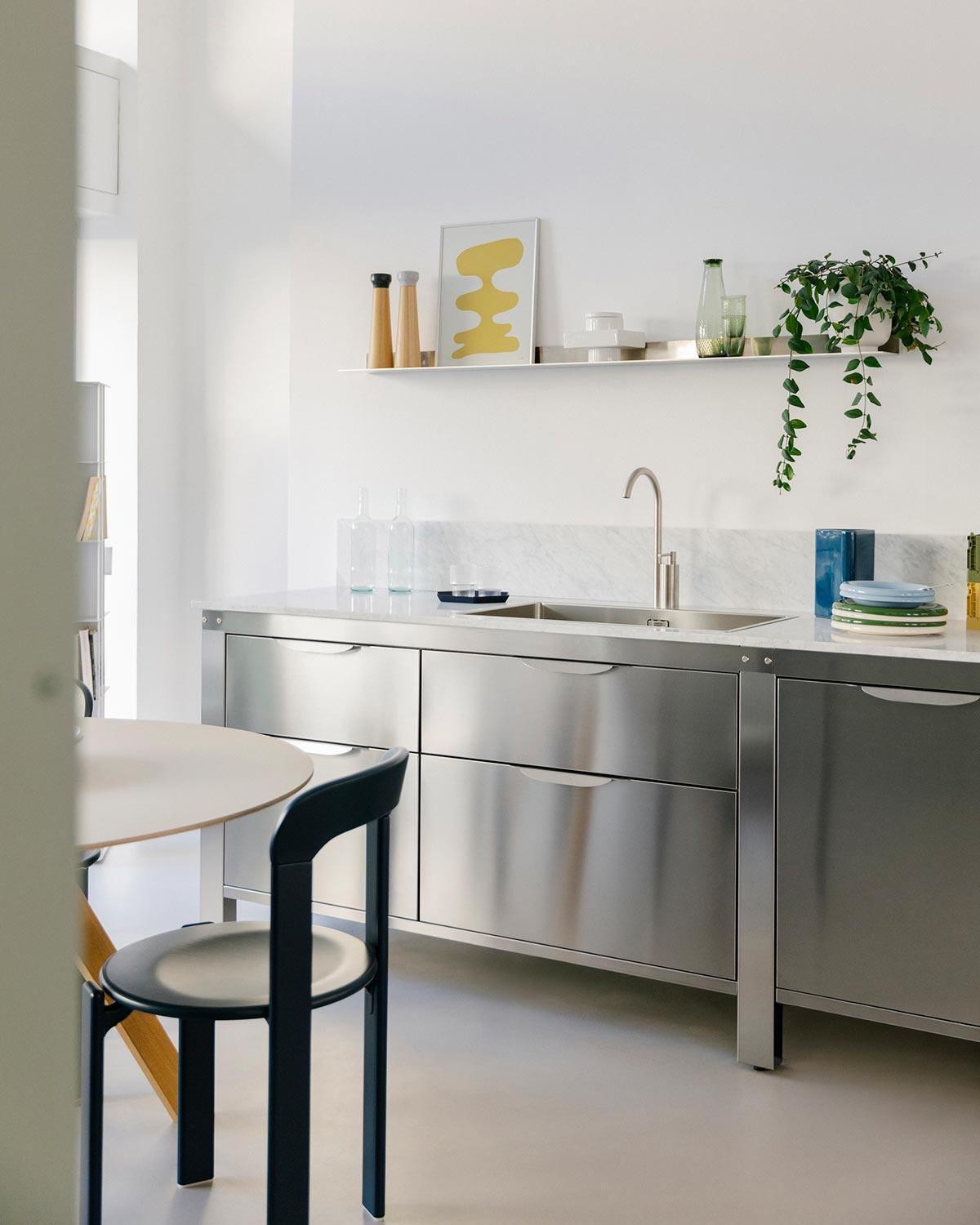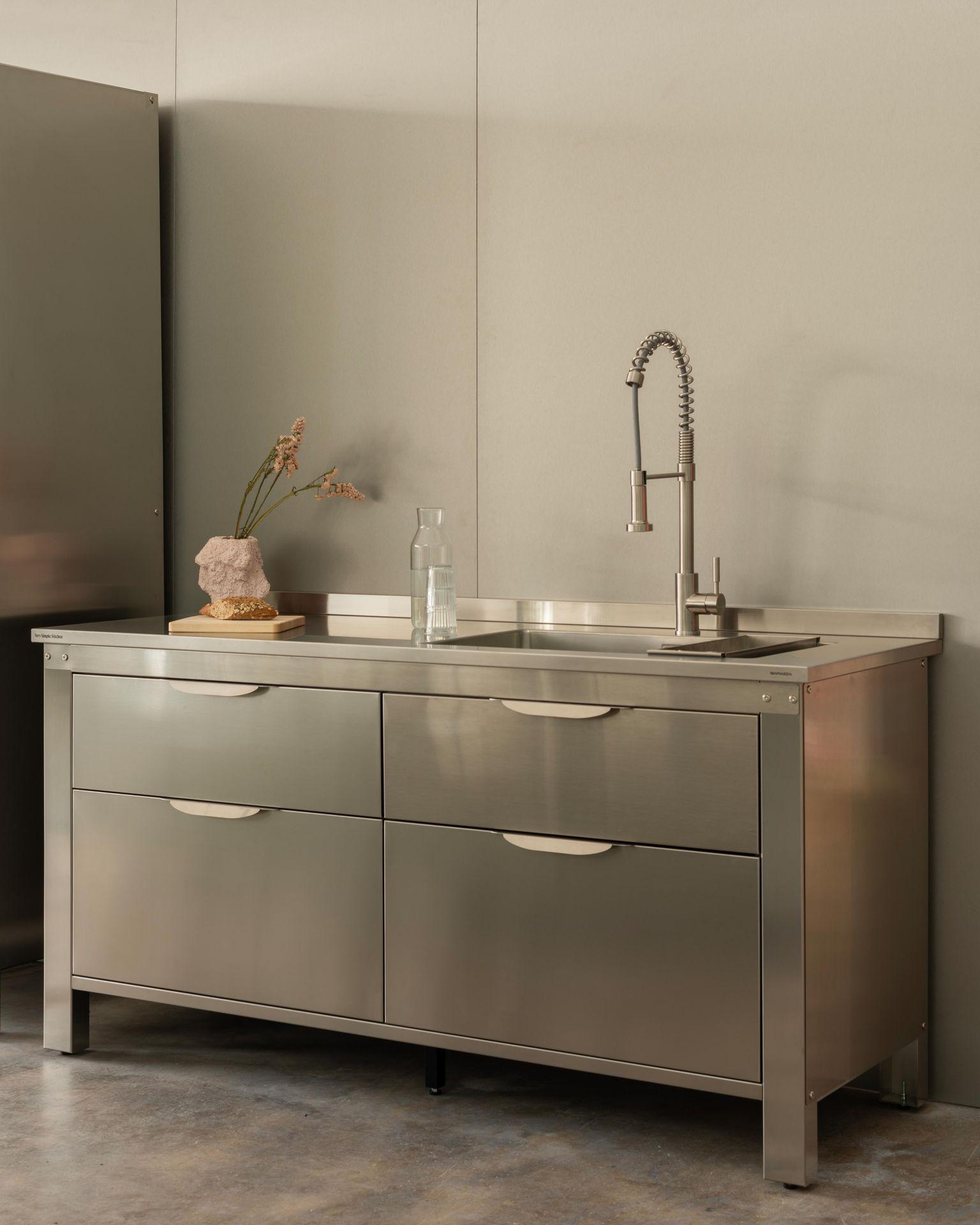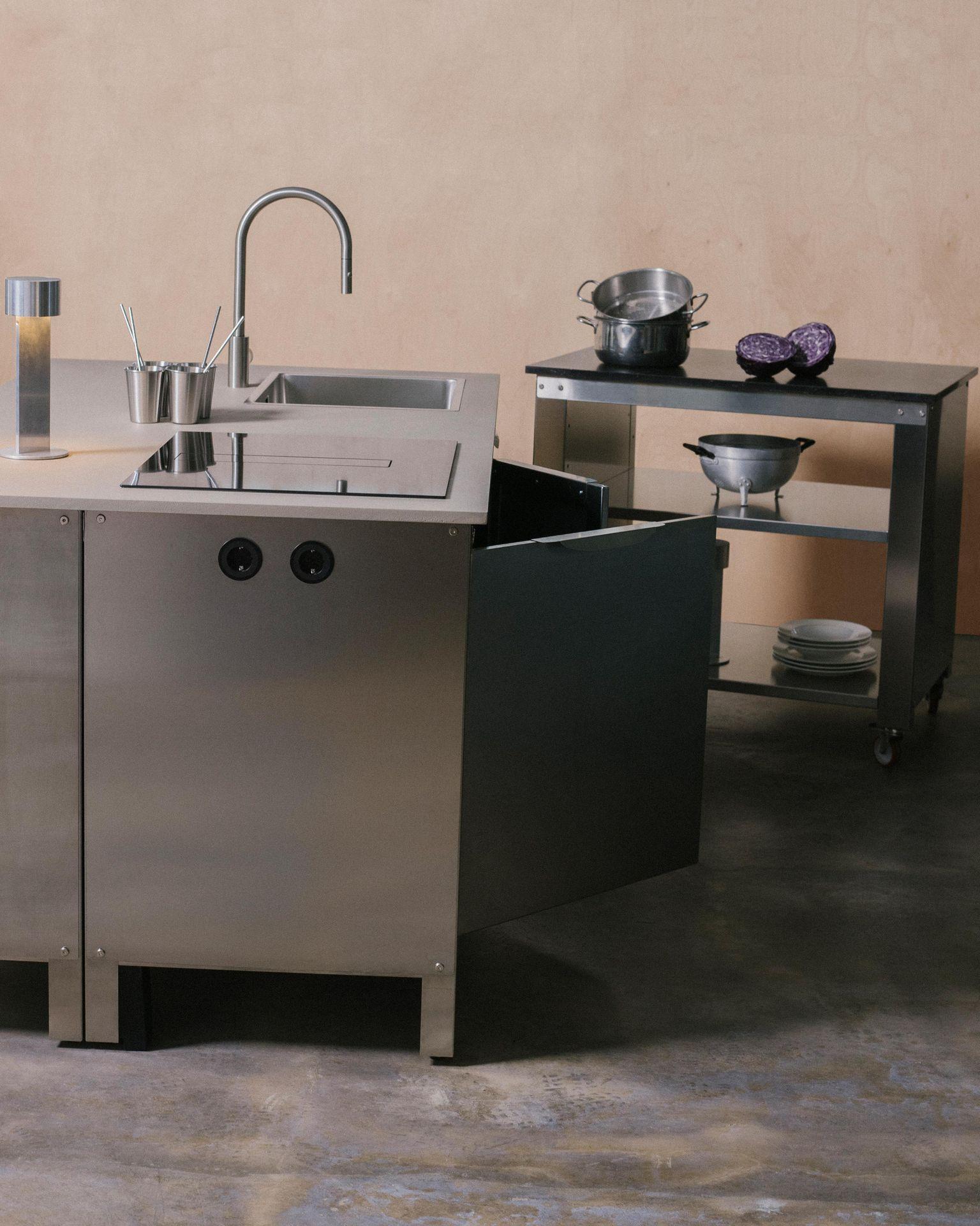 The uncoated kitchen structures are crafted from recycled stainless steel, a premium material celebrated for its durability, elegance, and sustainability.