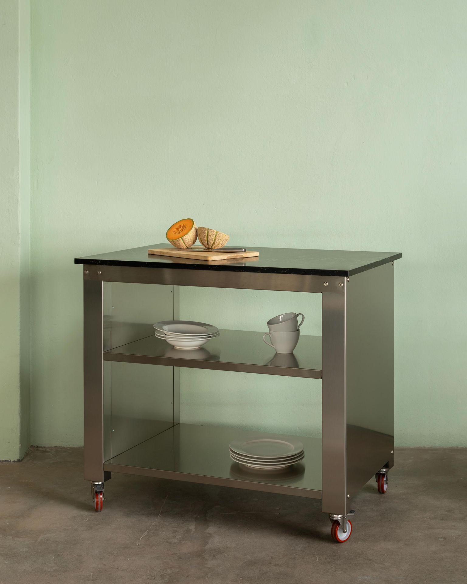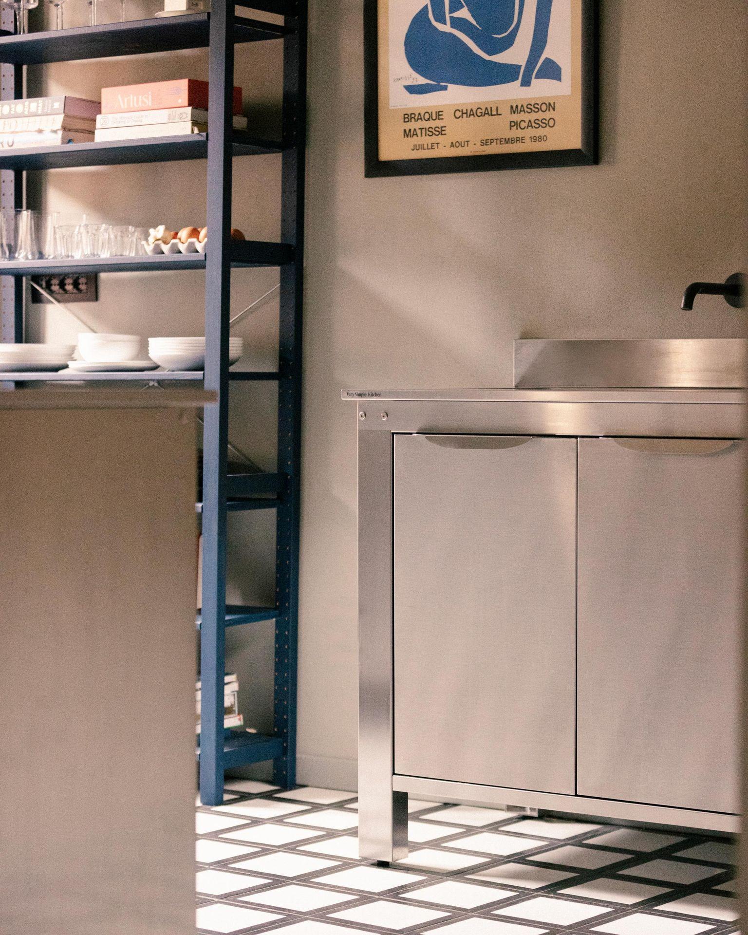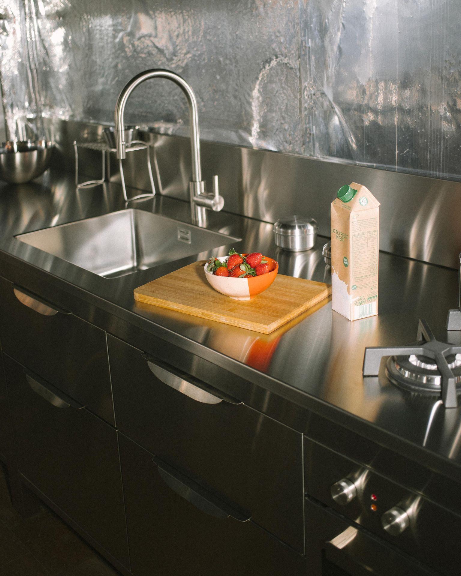 The uncoated kitchen structures are crafted from recycled stainless steel, a premium material celebrated for its durability, elegance, and sustainability.