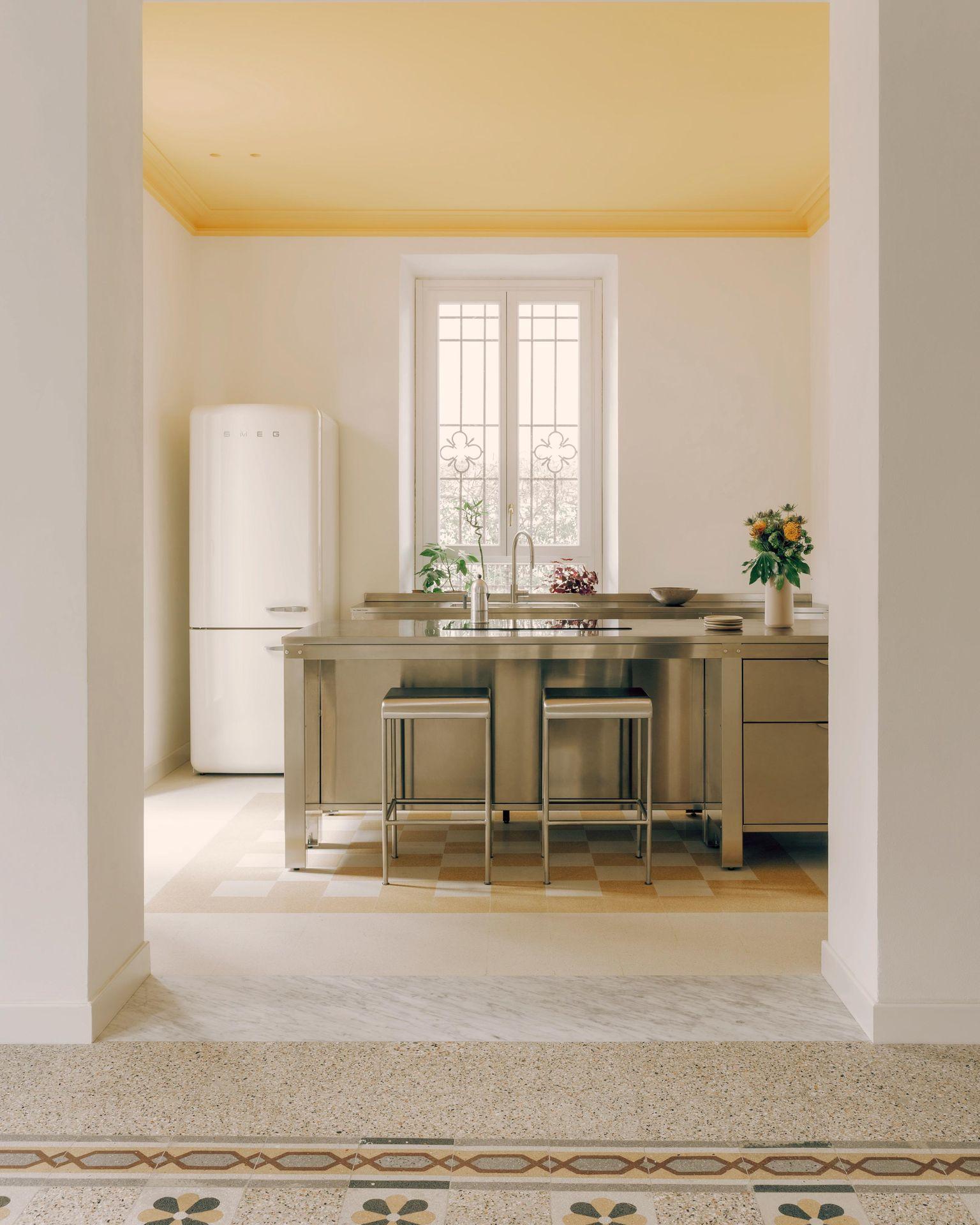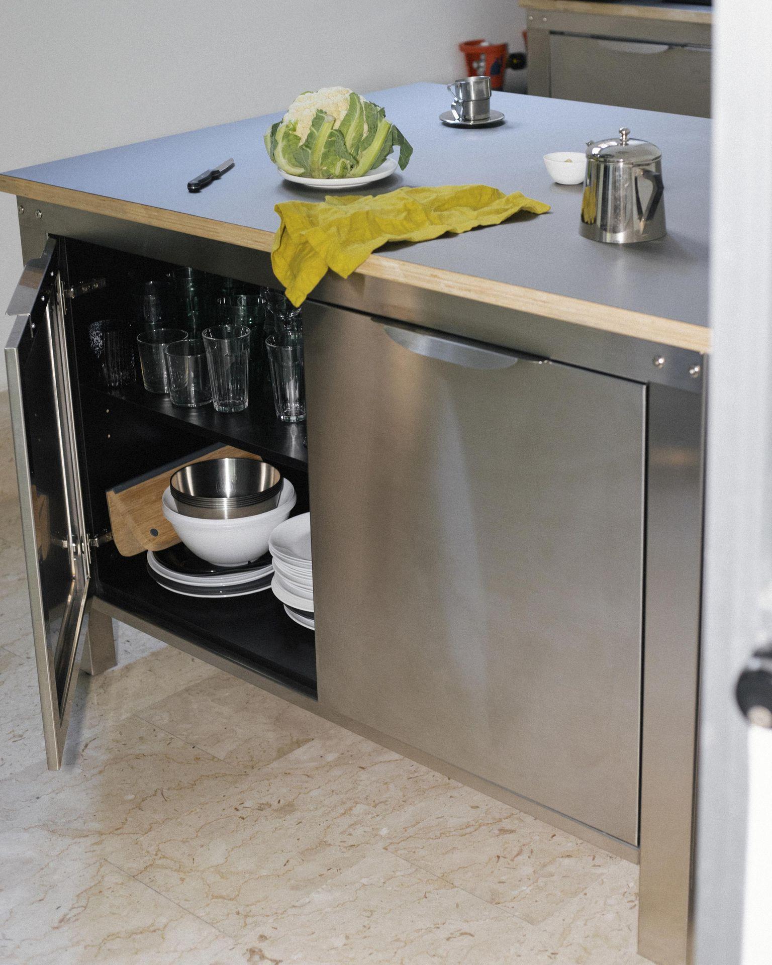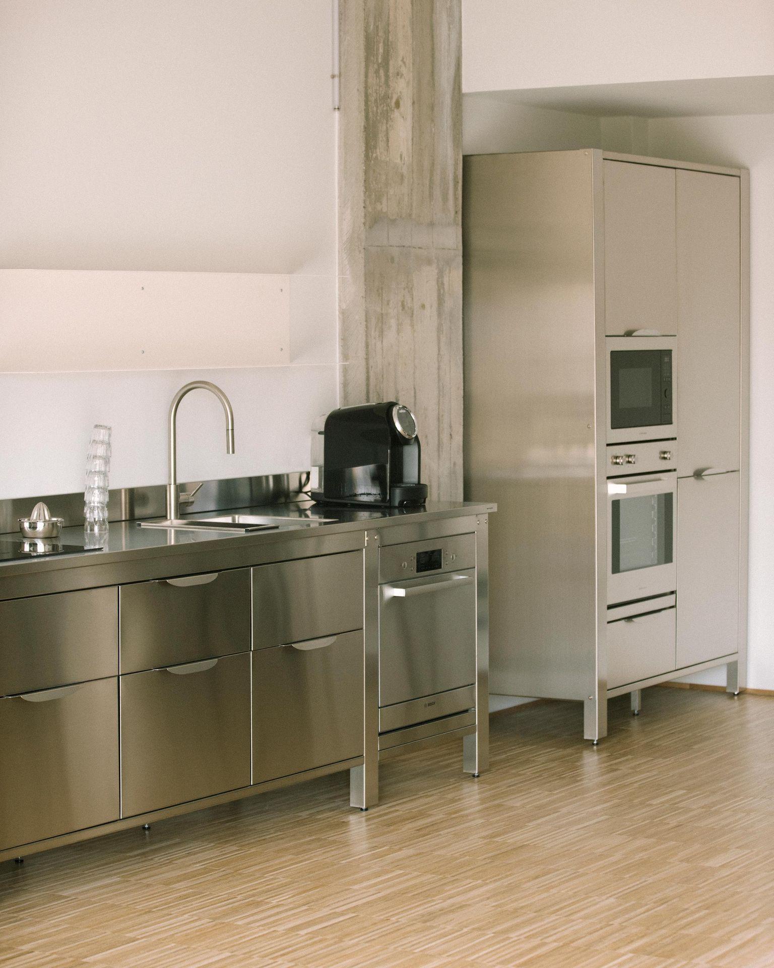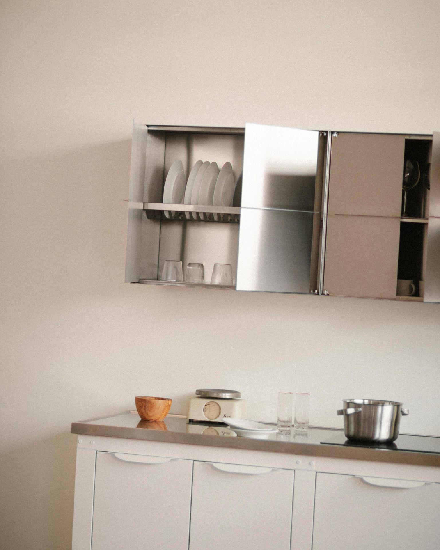 The uncoated kitchen structures are crafted from recycled stainless steel, a premium material celebrated for its durability, elegance, and sustainability.